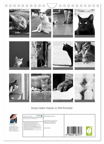 QUALITÄT - Hochwertiger Fotokalender mit 12 wunderschönen Motiven auf lichtbeständigem Bilderdruckpapier, robuste Spiralbindung mit Aufhängebügel.NACHHALTIG - deutliche Abfallreduzierung durch bedarfsgerechte Einzelstückfertigung, umweltfreundliches FSC-zertifiziertes Papier, Produktion in Deutschland, klimabewusste Logistik.PERFEKTES GESCHENK - Kalender für Freunde und Familie, für Kinder und Erwachsene, jung und alt, zu Weihnachten, Geburtstag oder zwischendurch.VIELFALT - Bildkalender in verschiedenen Formaten, z.B. DIN A5, DIN A4, DIN A3 sowie DIN A2. Ob Naturmotiv, Gemälde oder Fotos, ideal für ein persönliches Wohlfühlambiente.Katzen - festgehalten in SW-Fotografien von Autor(in): Sonja Heller