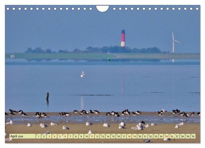 April: Leuchtturm im Watt. Ein windstiller Tag an der Nordsee