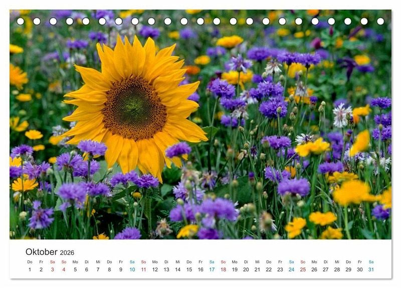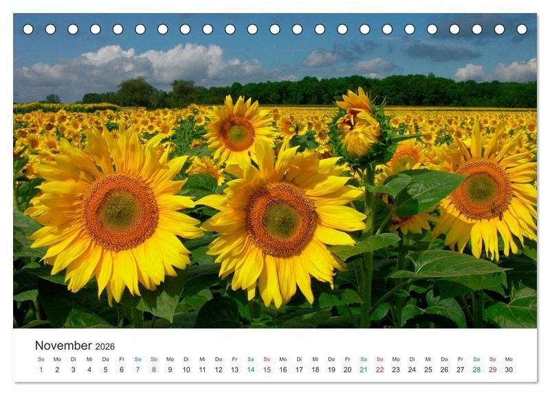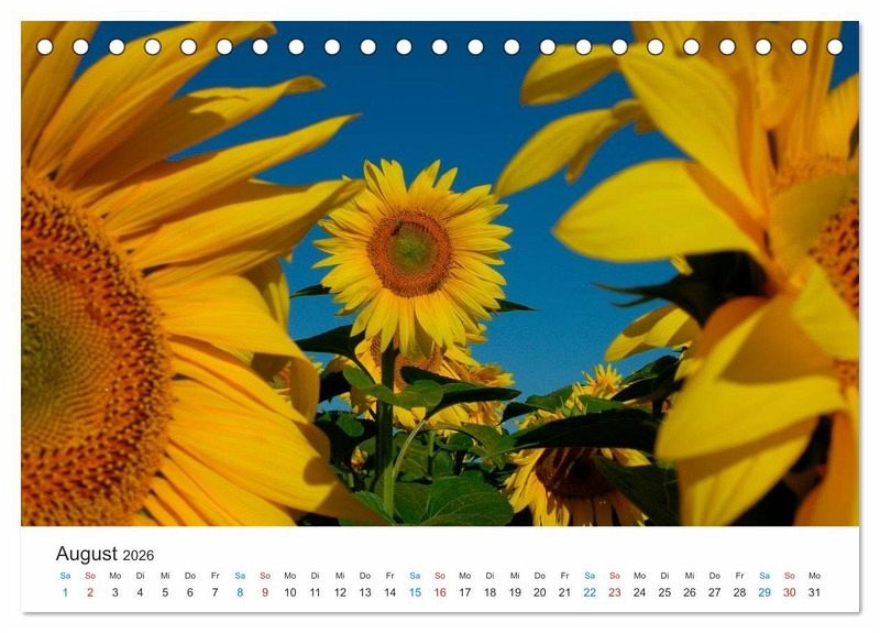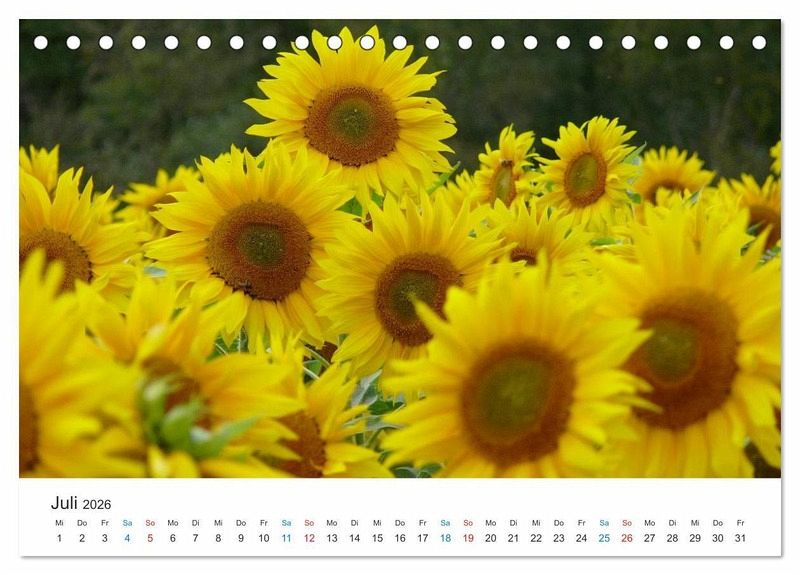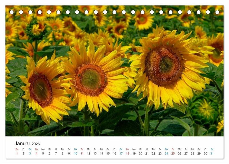 Sonnenblumen in verschiedenen Variationen zusammengefasst in einem farbenfrohen Bildkalender.