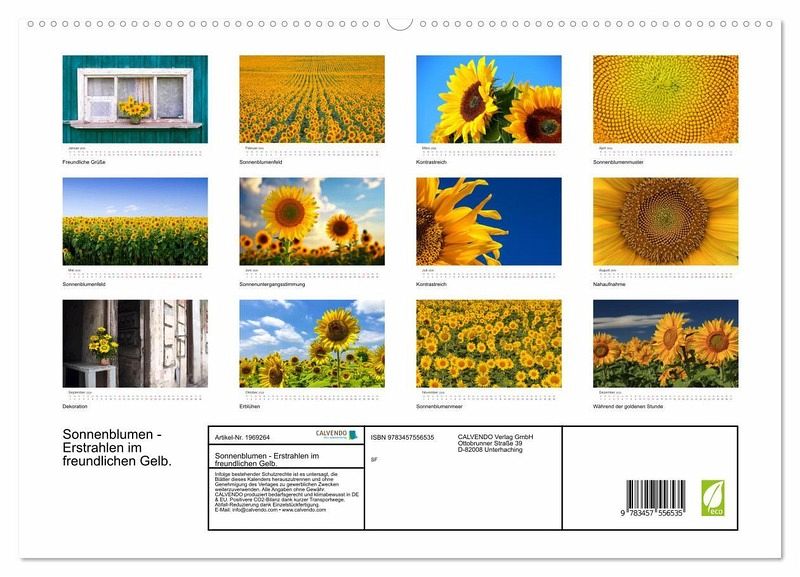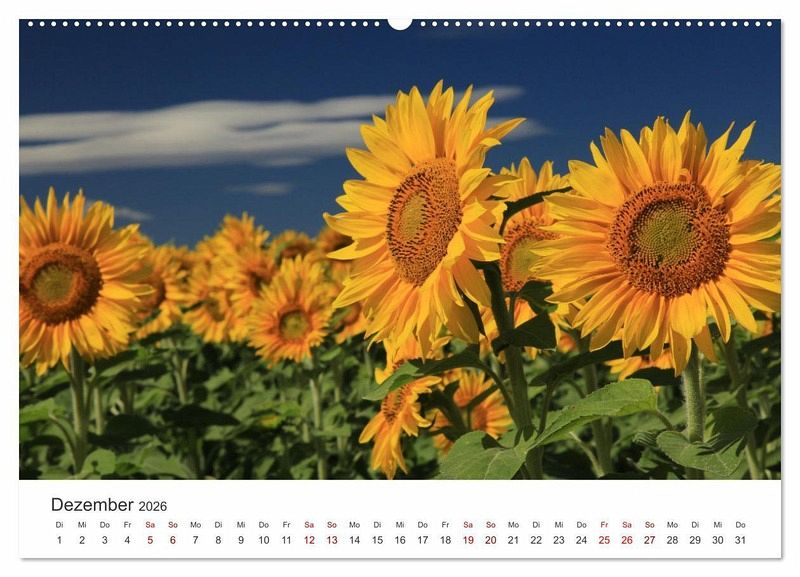 Mit diesen zwölf reizenden Fotos haben Sie ein ganzen Jahr lang sonnige Aussichten. Genießen Sie jedes Monat ein weiteres schönes Motiv der wunderschönen Sonnenblume.