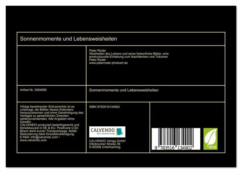 QUALITÄT - Hochwertiger Fotokalender mit 12 wunderschönen Motiven auf lichtbeständigem Bilderdruckpapier, robuste Spiralbindung.NACHHALTIG - deutliche Abfallreduzierung durch bedarfsgerechte Einzelstückfertigung, umweltfreundliches FSC-zertifiziertes Papier, Produktion in Deutschland, klimabewusste Logistik.PERFEKTES GESCHENK - Kalender für Freunde und Familie, für Kinder und Erwachsene, jung und alt, zu Weihnachten, Geburtstag oder zwischendurch.VIELFALT - Bildkalender in verschiedenen Formaten, z.B. DIN A5, DIN A4, DIN A3 sowie DIN A2. Ob Naturmotiv, Gemälde oder Fotos, ideal für ein persönliches Wohlfühlambiente.Momente beeindruckender Farbenvielfalt zu Beginn und am Ende des Tages - eine perfekte Ergänzung zu Lebensweisheiten, die zum Nachdenken anregen. von Autor(in): Peter Roder