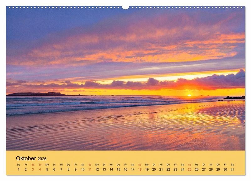 Sonnenuntergänge faszinieren immer wieder aufs Neue. Wolken und Wasserdampf in der Atmosphäre kreieren mit dem Sonnenlicht durch Reflexion, Beugung, Brechung und Absorption wundervolle sich ständig ändernde Farbmuster. Leider ist das Ganze viel zu schnell wieder vorbei. Erhalten bleiben einzelne Momentaufnahmen. In diesem Kalender finden Sie eine Auswahl der schönsten Sonnenuntergangsfotos von der côte d'Émeraude bis zur côte d'Argent.