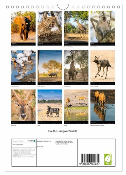 QUALITY - High-quality photo calendar with 12 beautiful images on light-resistant paper, robust spiral binding with hanger.SUSTAINABLE - Significant waste reduction due to print-on-demand production, environmentally friendly FSC-certified paper, produced in the UK, climate-conscious logistical processes.PERFECT GIFT - calendars for friends and family, for children, all ages and all occasions, from Christmas to birthdays and everything in between.LOTS OF CHOICE - Wall calendars in different sizes (DIN A4 and DIN A3), for any topic and personal taste, featuring photography, painting and illustrations.Wild animals in the South Luangwa National Park, author: Bruno Pohl