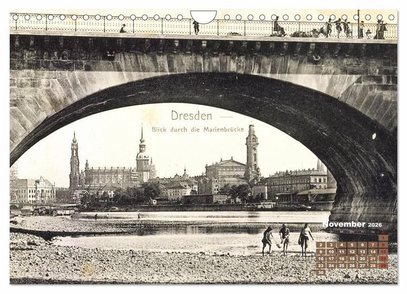 November: Ausgetrocknete Elbe an der Marienbrücke