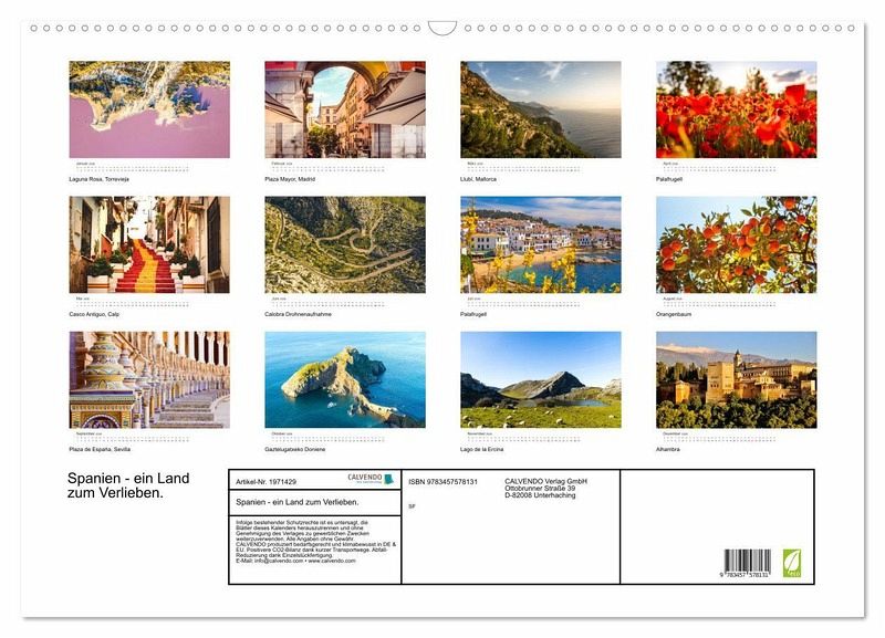 Kaum ein Land ist so schön wie Spanien. Dieser Kalender zeigt die unglaublich schöne Vielfalt von Spanien. Lassen Sie sich jedes Monat auf Neue von einem tollen Motiv überraschen.