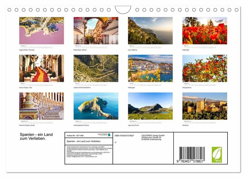 Kaum ein Land ist so schön wie Spanien. Dieser Kalender zeigt die unglaublich schöne Vielfalt von Spanien. Lassen Sie sich jedes Monat auf Neue von einem tollen Motiv überraschen.