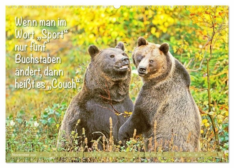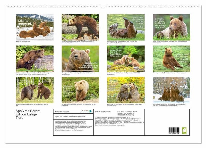 QUALITÄT - Hochwertiger Fotokalender mit 12 wunderschönen Motiven auf lichtbeständigem Bilderdruckpapier, robuste Spiralbindung mit Aufhängebügel.NACHHALTIG - deutliche Abfallreduzierung durch bedarfsgerechte Einzelstückfertigung, umweltfreundliches FSC-zertifiziertes Papier, Produktion in Deutschland, klimabewusste Logistik.PERFEKTES GESCHENK - Kalender für Freunde und Familie, für Kinder und Erwachsene, jung und alt, zu Weihnachten, Geburtstag oder zwischendurch.VIELFALT - Bildkalender in verschiedenen Formaten, z.B. DIN A5, DIN A4, DIN A3 sowie DIN A2. Ob Naturmotiv, Gemälde oder Fotos, ideal für ein persönliches Wohlfühlambiente.Bären: Meister Petz, freche Sprüche und humorvolle Tierporträts von Autor(in): CALVENDO Verlag