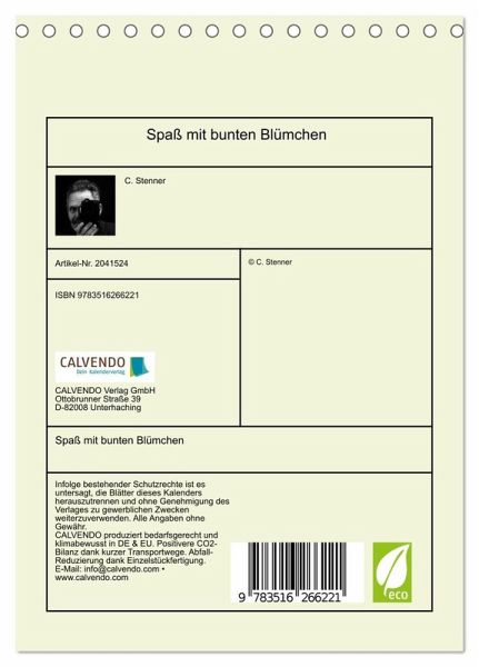 QUALITÄT - Hochwertiger Fotokalender mit 12 wunderschönen Motiven auf lichtbeständigem Bilderdruckpapier, robuste Spiralbindung.NACHHALTIG - deutliche Abfallreduzierung durch bedarfsgerechte Einzelstückfertigung, umweltfreundliches FSC-zertifiziertes Papier, Produktion in Deutschland, klimabewusste Logistik.PERFEKTES GESCHENK - Kalender für Freunde und Familie, für Kinder und Erwachsene, jung und alt, zu Weihnachten, Geburtstag oder zwischendurch.VIELFALT - Bildkalender in verschiedenen Formaten, z.B. DIN A5, DIN A4, DIN A3 sowie DIN A2. Ob Naturmotiv, Gemälde oder Fotos, ideal für ein persönliches Wohlfühlambiente.Bunte Farben- und Formenwelt der Blüten von Autor(in): Clemens Stenner