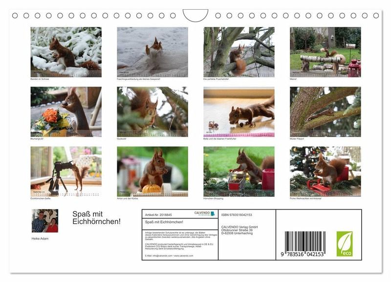 QUALITÄT - Hochwertiger Fotokalender mit 12 wunderschönen Motiven auf lichtbeständigem Bilderdruckpapier, robuste Spiralbindung mit Aufhängebügel.NACHHALTIG - deutliche Abfallreduzierung durch bedarfsgerechte Einzelstückfertigung, umweltfreundliches FSC-zertifiziertes Papier, Produktion in Deutschland, klimabewusste Logistik.PERFEKTES GESCHENK - Kalender für Freunde und Familie, für Kinder und Erwachsene, jung und alt, zu Weihnachten, Geburtstag oder zwischendurch.VIELFALT - Bildkalender in verschiedenen Formaten, z.B. DIN A5, DIN A4, DIN A3 sowie DIN A2. Ob Naturmotiv, Gemälde oder Fotos, ideal für ein persönliches Wohlfühlambiente.Eichhörnchenfotografie, der Jahreszeit entsprechend lustig in Szene gesetzt. von Autor(in): Heike Adam