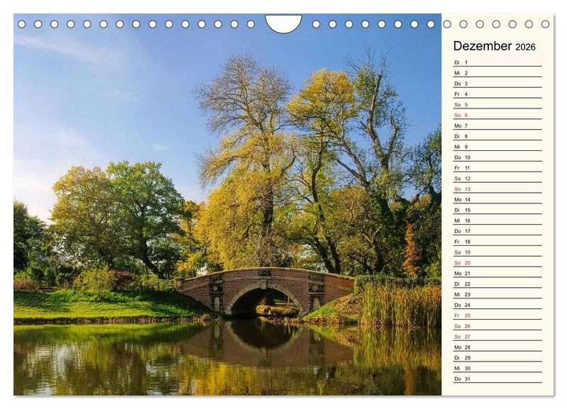 Mit diesem Kalender machen Sie einen Rundgang durch einen der ersten großen deutschen Landschaftparks - den Wörlitzer Garten. Versteckte Kleinode, Tempel und Brücken wechseln sich mit immer wieder überraschenden Sichtachsen ab.