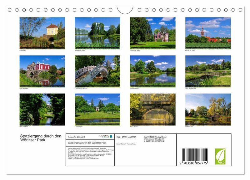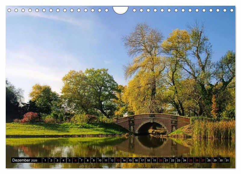 Mit diesem Kalender machen Sie einen Rungang durch einen der ersten großen deutschen Landschaftparks - den Wörlitzer Garten. Versteckte Kleinode, Tempel und Brücken wechseln sich mit immer wieder überraschenden Sichtachsen ab.