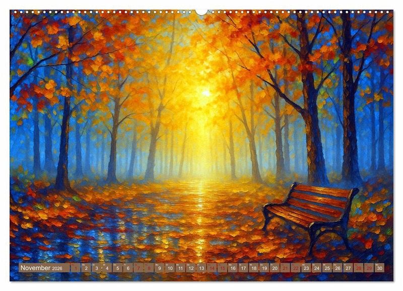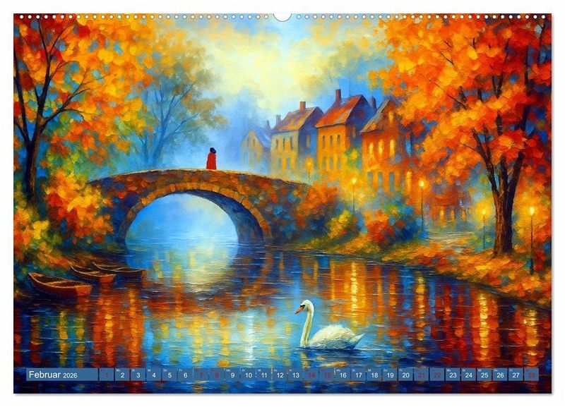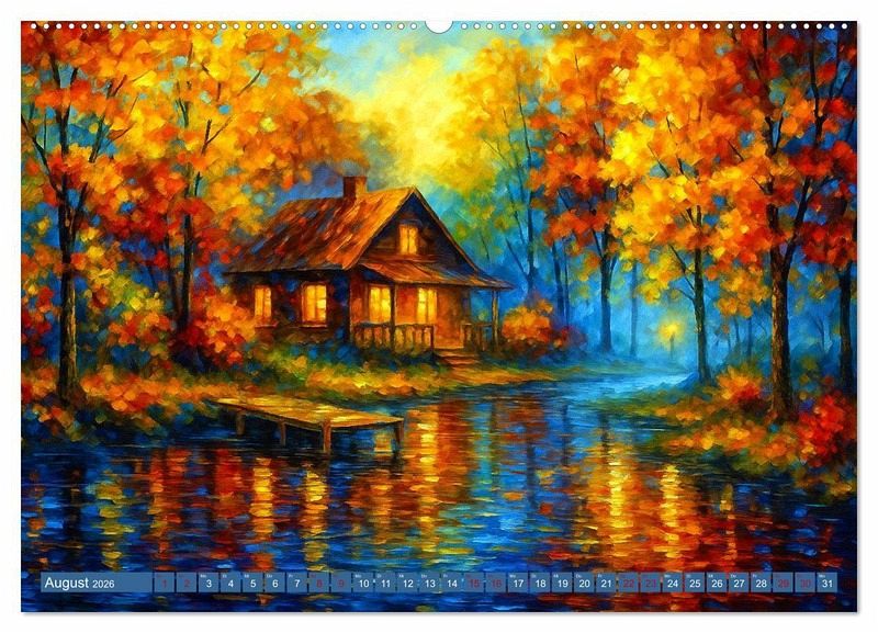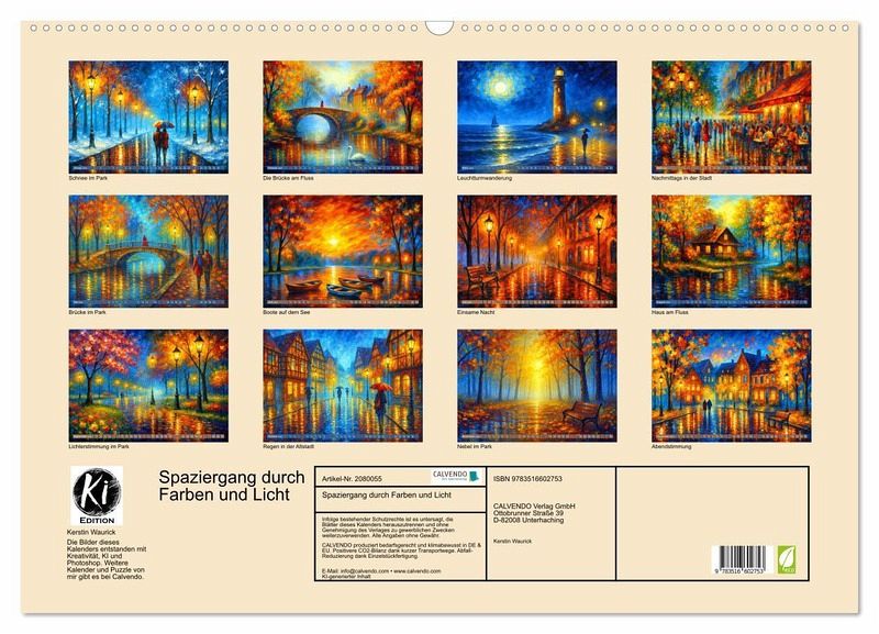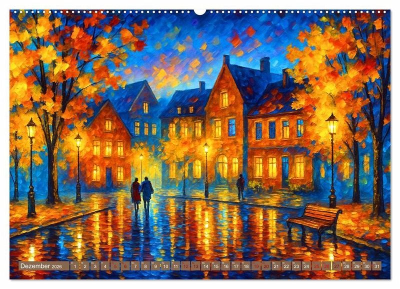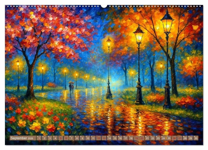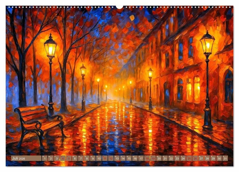 Jeder Monat dieses Kalenders zeigt ein einzigartiges Motiv, das mithilfe künstlicher Intelligenz im impressionistischen Stil erschaffen wurde. Farbenfrohe Stadtansichten, stimmungsvolle Landschaften und magische Lichtspiele laden zum Träumen ein. So verbindet der Kalender künstlerische Inspiration mit moderner Technologie - für einen besonderen Blickfang an jeder Wand.