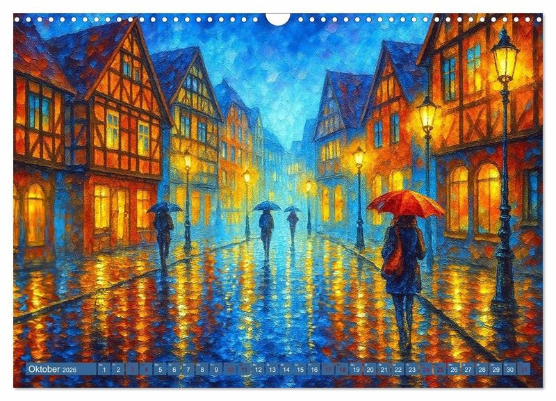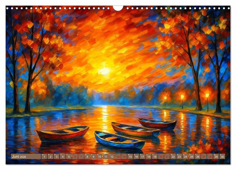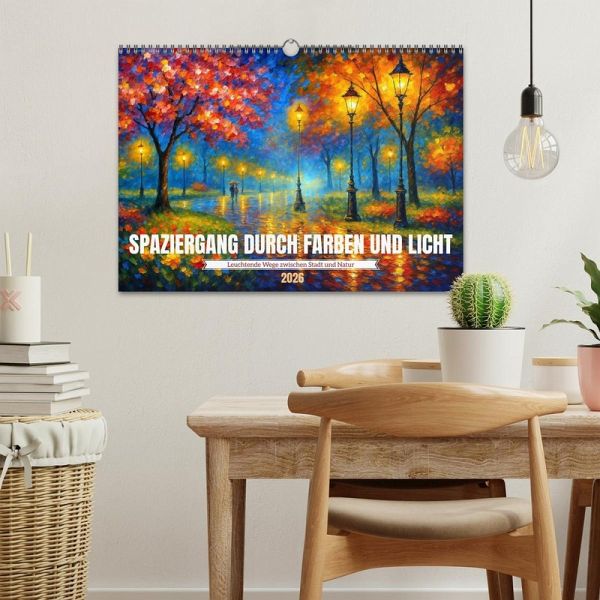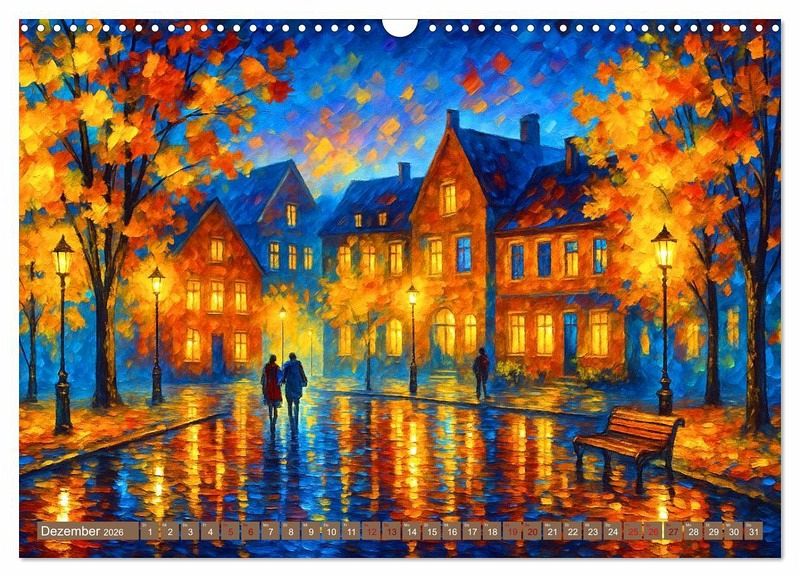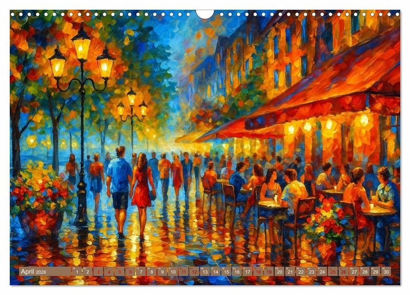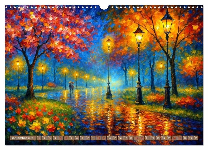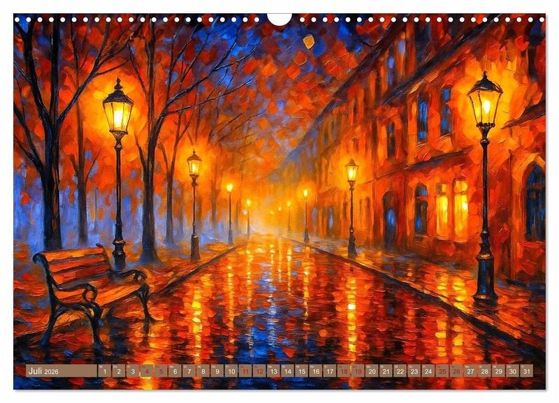 Jeder Monat dieses Kalenders zeigt ein einzigartiges Motiv, das mithilfe künstlicher Intelligenz im impressionistischen Stil erschaffen wurde. Farbenfrohe Stadtansichten, stimmungsvolle Landschaften und magische Lichtspiele laden zum Träumen ein. So verbindet der Kalender künstlerische Inspiration mit moderner Technologie - für einen besonderen Blickfang an jeder Wand.