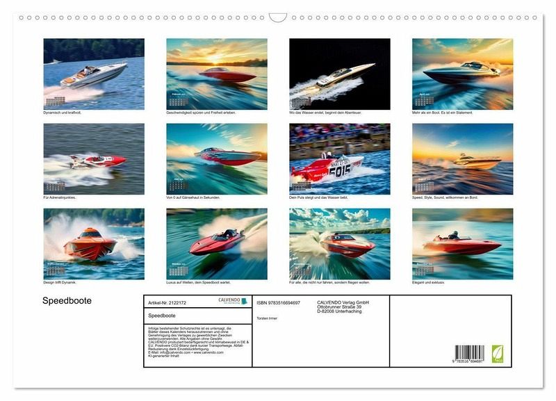 Der Sound des Sommers, eingefangen in jedem Blatt. Der Speedboot Kalender für echte Seelenkapitäne. Der Inhalt wurde mit Hilfe von KI erstellt.