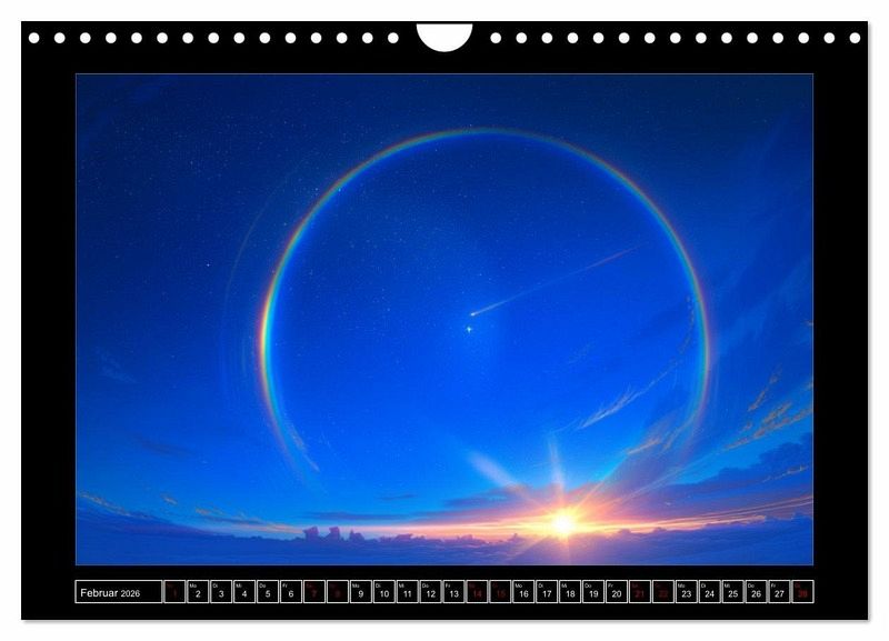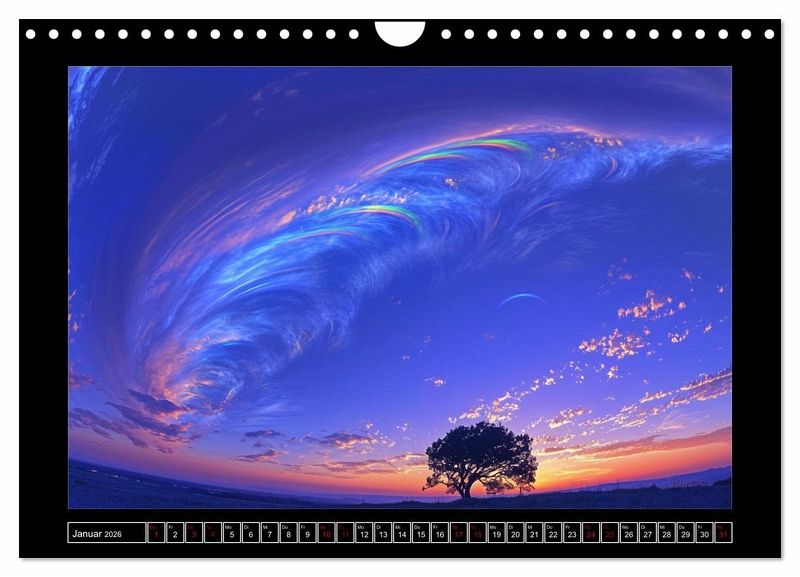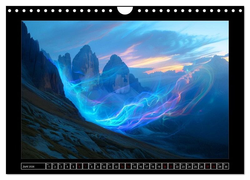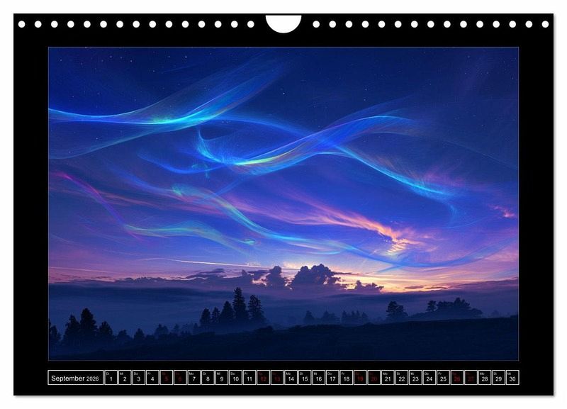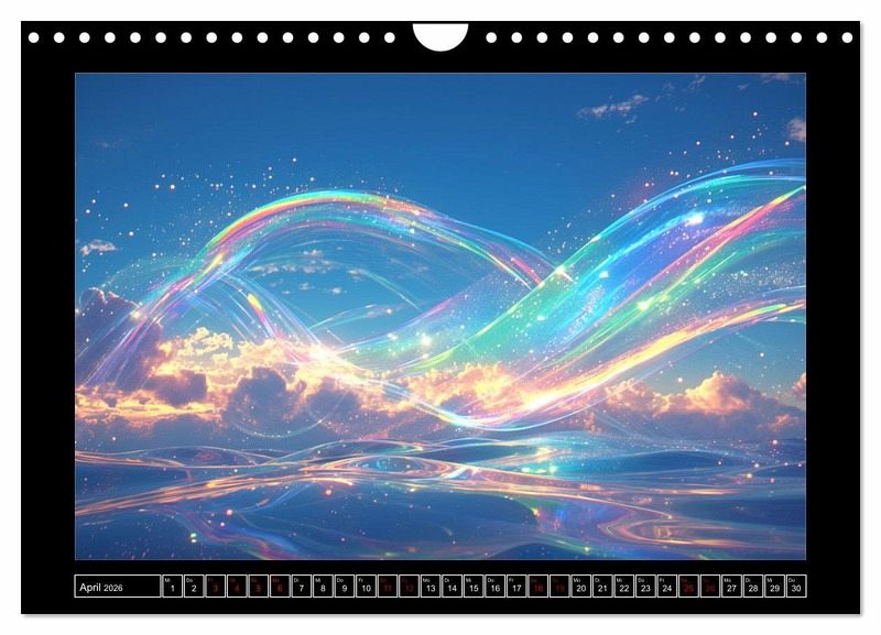 Erleben Sie die atemberaubende Schönheit der Natur auf eine völlig neue Art und Weise mit unserem einzigartigen Kalender, der von künstlicher Intelligenz (KI) gestaltete Lichtphänomene präsentiert. Die KI bekam hier verschiedene komplexe mathematische Formeln als Ausgangsinformation und interpretierte sie als Licht. Dadurch wurden die Spektralphänomene erschaffen, die die natürliche Schönheit der Dämmerung verstärken und sie in einem neuen, faszinierenden Licht erscheinen lassen.