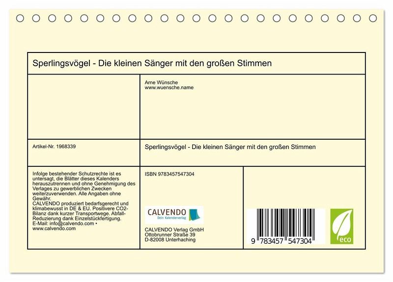 QUALITÄT - Hochwertiger Fotokalender mit 12 wunderschönen Motiven auf lichtbeständigem Bilderdruckpapier, robuste Spiralbindung.NACHHALTIG - deutliche Abfallreduzierung durch bedarfsgerechte Einzelstückfertigung, umweltfreundliches FSC-zertifiziertes Papier, Produktion in Deutschland, klimabewusste Logistik.PERFEKTES GESCHENK - Kalender für Freunde und Familie, für Kinder und Erwachsene, jung und alt, zu Weihnachten, Geburtstag oder zwischendurch.VIELFALT - Bildkalender in verschiedenen Formaten, z.B. DIN A5, DIN A4, DIN A3 sowie DIN A2. Ob Naturmotiv, Gemälde oder Fotos, ideal für ein persönliches Wohlfühlambiente.Besonders schöne Aufnahmen unserer Sperlingsvögel von Autor(in): Arne Wünsche