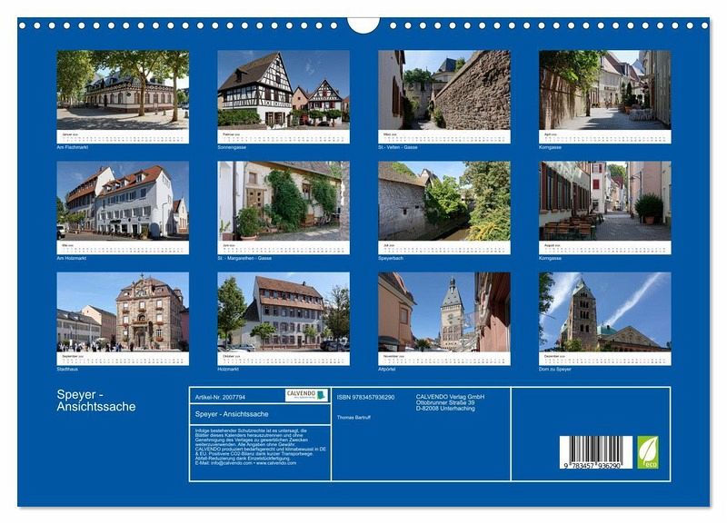 QUALITÄT - Hochwertiger Fotokalender mit 12 wunderschönen Motiven auf lichtbeständigem Bilderdruckpapier, robuste Spiralbindung mit Aufhängebügel.NACHHALTIG - deutliche Abfallreduzierung durch bedarfsgerechte Einzelstückfertigung, umweltfreundliches FSC-zertifiziertes Papier, Produktion in Deutschland, klimabewusste Logistik.PERFEKTES GESCHENK - Kalender für Freunde und Familie, für Kinder und Erwachsene, jung und alt, zu Weihnachten, Geburtstag oder zwischendurch.VIELFALT - Bildkalender in verschiedenen Formaten, z.B. DIN A5, DIN A4, DIN A3 sowie DIN A2. Ob Naturmotiv, Gemälde oder Fotos, ideal für ein persönliches Wohlfühlambiente.Eine etwas andere Sicht auf Speyer von Autor(in): Thomas Bartruff