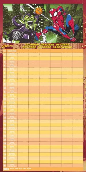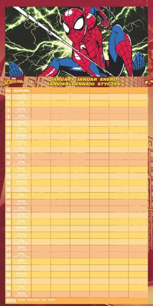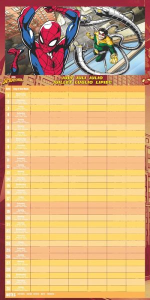 Der Pyramid SPIDER-MAN Familienplaner 2026 macht Terminplanung zum Superhelden-Abenteuer. Mit 12 dynamischen Motiven des beliebten Marvel-Helden und einem mehrspaltigen Layout wird Organisation zum Kinderspiel. Highlights: - 12 offiziell lizenzierte SPIDER-MAN Motive voller Action - Mehrere Spalten für die Termine aller Familienmitglieder - Format 30×30 cm (aufgeklappt 30×60 cm) – viel Platz für Notizen - Englisches Kalendarium im klassischen Marvel-Design - Perfektes Geschenk für Familien & Superhelden-Fans Mit dem Pyramid SPIDER-MAN Kalender 2026 wird jeder Monat zu einem actionreichen Highlight für die ganze Familie. Sprachen: Deutsch, Englisch, Französisch, Italienisch, Polnisch, Spanisch