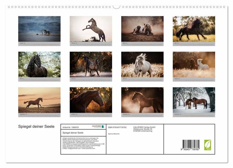 PREMIUM-LINIE - Brillanter Fotokalender mit 12 wunderschönen Motiven, Kunstdruck in Hochglanz in Museumsqualität.QUALITÄT - edle Materialien, stabile Rückwand mit 2 innovativen Einstecktaschen für eine optimale Präsentation an der Wand.NACHHALTIG - deutliche Abfallreduzierung durch bedarfsgerechte Einzelstückfertigung, umweltfreundliches FSC-zertifiziertes Papier, Produktion in Deutschland, klimabewusste Logistik.PERFEKTES GESCHENK - Kalender für Freunde und Familie, für Kinder und Erwachsene, jung und alt, zu Weihnachten, Geburtstag oder zwischendurch.Lassen Sie sich entführen in die Faszinierende Welt der Pferde von Autor(in): Sabrina Mischnik
