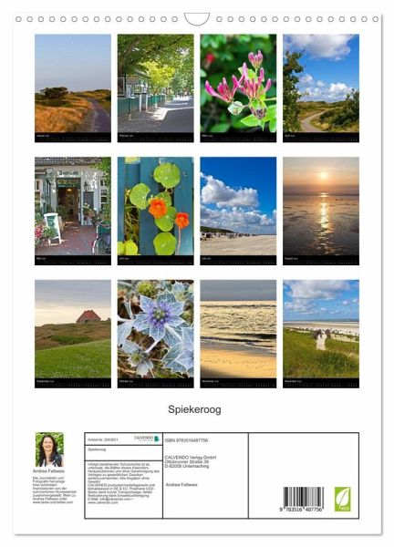 Der Sommer auf der Nordseeinsel Spiekeroog ist etwas ganz Besonderes: Neben einem sauberen Strand, einer vielfältigen Dünenlandschaft und idyllischen Waldbereichen genießen Besucher und Bewohner ein lebhaftes Dorf mit interessanten Geschäften, Restaurants und Teestuben. Einige dieser Impressionen zeigt dieser Kalender von Andrea Fettweis. Eine schöne Erinnerung für Inselbesucher, Natur- und Kunstliebhaber!