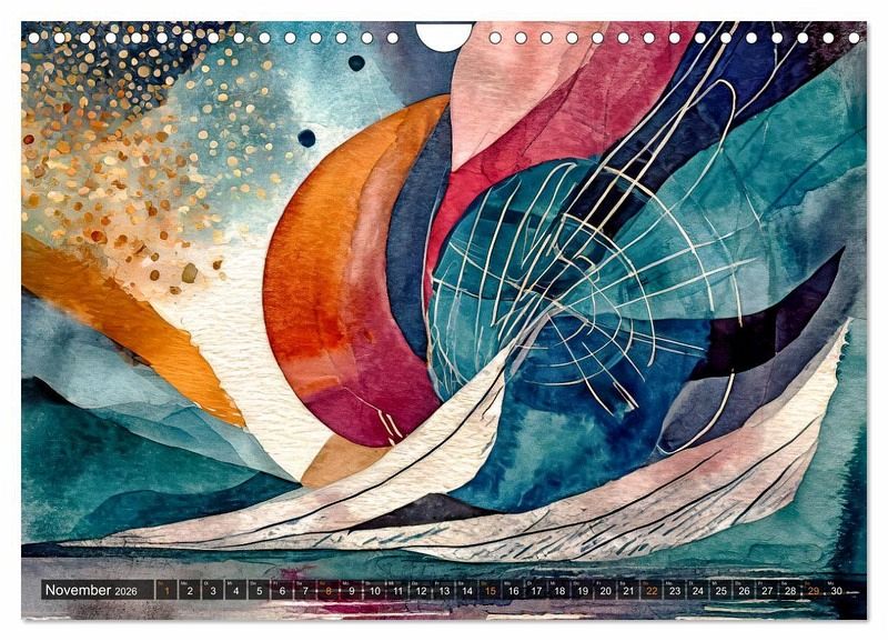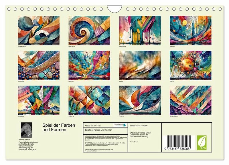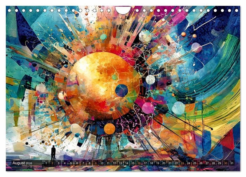 Üblicherweise lassen sich Begriffe nicht abbilden, beziehungsweise nur indirekt. Freude kann etwa "ersatzweise" durch einen freudestahlenden Menschen dargestellt werden. Eines von mehreren Zielen abstrakter Kunst war es jedoch auch, Begriffliches direkt sichtbar zu machen. Unter diesem Aspekt können die Bilder des vorliegenden Kalenders gesehen werden, welche mit Hilfe von künstlicher Intelligenz eindrucksvoll gestaltet wurden. Doch das ist nicht notwendig. Sie können den Betrachter ebenso bloß durch ihre dekorative Qualität, durch das Spiel von Farben und Formen in den Bann ziehen. Wie man sich den Bildern auch nähert: Auf jeder Wand sind sie eine Zierde.