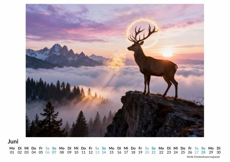 Gibt es eine unsichtbare Brücke zwischen dem Kosmos und unserem irdischen Dasein? Der Kalender "Spirituelle & himmlische Motive" erkundet diese faszinierende Verbindung in zwölf einzigartigen Bildkompositionen. Er ist ein visueller Begleiter für alle, die nach Momenten der Stille und Inspiration im Alltag suchen. Dieser Kalender ist eine passende Wahl für: * Menschen, die Inspiration in der Verbindung von Spirituellem und Alltäglichem suchen. * Liebhaber von Motiven, die kosmische Weite und irdische Ruhe vereinen. * Alle, die ihre Räume mit einer Atmosphäre der Besinnung und des Staunens bereichern möchten. Zwölf Motive begleiten durch das Jahr, von leuchtenden Himmelskörpern über mystischen Landschaften bis hin zu symbolischen Darstellungen, die das Göttliche im Irdischen spiegeln. Jedes Monatsbild ist das Ergebnis eines kreativen Dialogs zwischen menschlicher Vision und der Rechenkraft moderner Algorithmen, was zu einer ganz eigenen visuellen Sprache führt. Die Bilder laden dazu ein, die Gedanken schweifen zu lassen und die eigene Fantasie anzuregen. Beim Kauf dieses Kalenders kann man Folgendes erwarten: * Zwölf sorgfältig ausgewählte Bildkompositionen zum Thema Himmel und Erde. * Ein praktisches Kalendarium, das den Blick auf das Wesentliche lenkt. * Einen monatlichen visuellen Impuls für Momente der Ruhe und Reflexion. Dieser Kalender ist mehr als nur ein Zeitmesser; er ist ein Begleiter, der Monat für Monat dazu einlädt, die Verbindung zwischen dem Sichtbaren und dem Unsichtbaren neu zu entdecken. Eine Vorschau der einzelnen Monatsblätter gibt einen Einblick in die spirituelle Reise durch das Jahr.