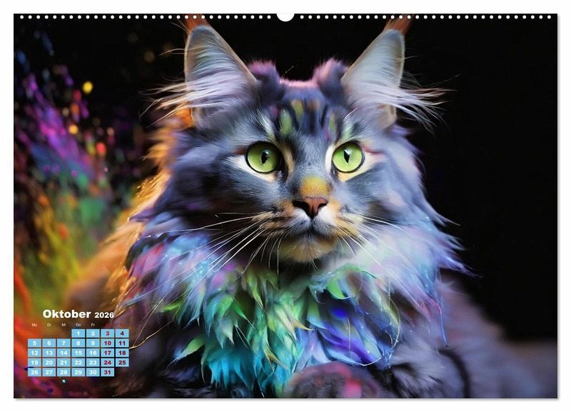 Oktober: Main Coon Katze im bunten Splash