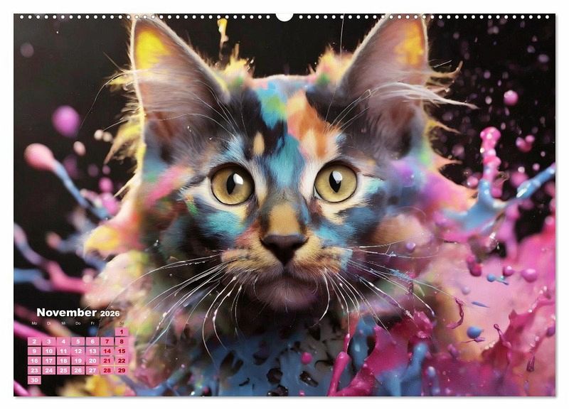 November: Sibirische Katze im bunten Splash