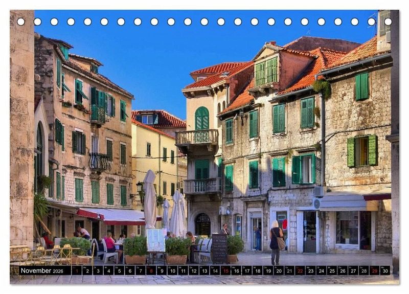 Split, die Hauptstadt Dalmatiens, bezaubert jeden Besucher. Das Flair einer Großstadt verbindet sich hier mit einzigartigen römischen Bauten. Bummeln sie mit diesem Kalender durch die Altstadt und spazieren die palmengesäumte Promenade entlang.