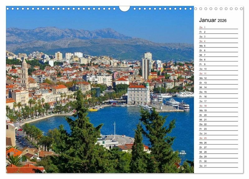 Split, die Hauptstadt Dalmatiens, bezaubert jeden Besucher. Das Flair einer Großstadt verbindet sich hier mit einzigartigen römischen Bauten. Bummeln sie mit diesem Kalender durch die Altstadt und spazieren die palmengesäumte Promenade entlang.