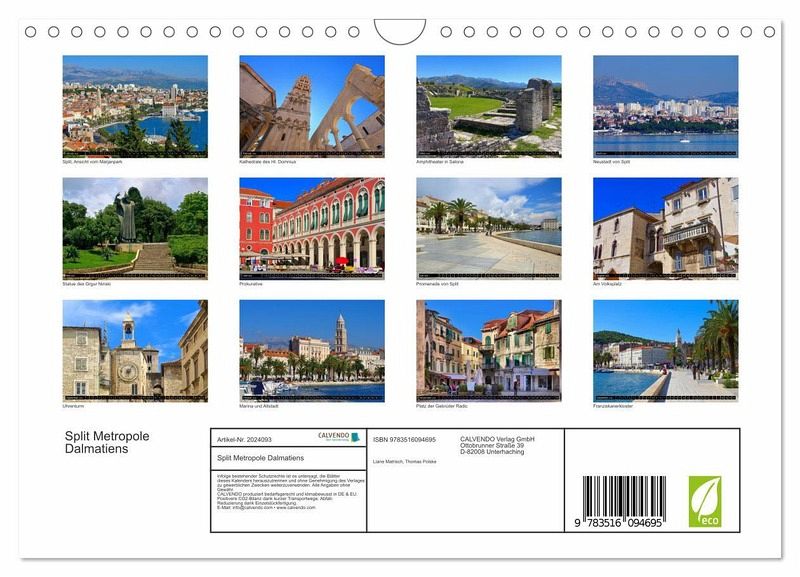 Split, die Hauptstadt Dalmatiens, bezaubert jeden Besucher. Das Flair einer Großstadt verbindet sich hier mit einzigartigen römischen Bauten. Bummeln sie mit diesem Kalender durch die Altstadt und spazieren die palmengesäumte Promenade entlang.