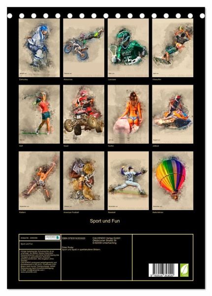 QUALITÄT - Hochwertiger Fotokalender mit 12 wunderschönen Motiven auf lichtbeständigem Bilderdruckpapier, robuste Spiralbindung.NACHHALTIG - deutliche Abfallreduzierung durch bedarfsgerechte Einzelstückfertigung, umweltfreundliches FSC-zertifiziertes Papier, Produktion in Deutschland, klimabewusste Logistik.PERFEKTES GESCHENK - Kalender für Freunde und Familie, für Kinder und Erwachsene, jung und alt, zu Weihnachten, Geburtstag oder zwischendurch.VIELFALT - Bildkalender in verschiedenen Formaten, z.B. DIN A5, DIN A4, DIN A3 sowie DIN A2. Ob Naturmotiv, Gemälde oder Fotos, ideal für ein persönliches Wohlfühlambiente.Fun und Sport, voll im Trend. von Autor(in): Peter Roder