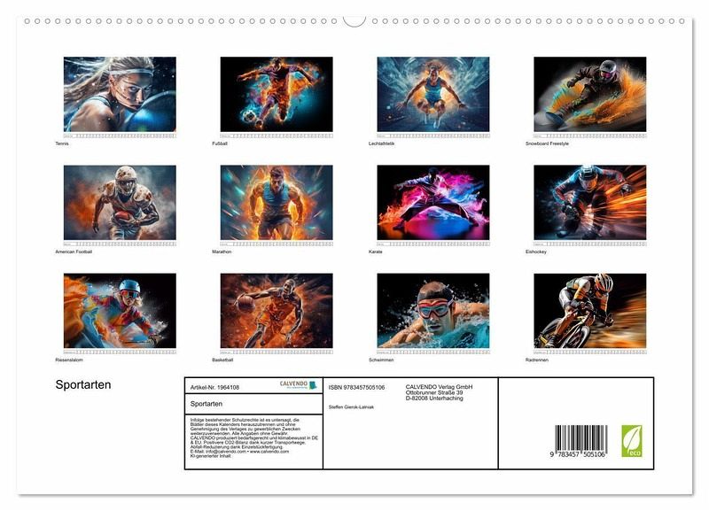PREMIUM-LINIE - Brillanter Fotokalender mit 12 wunderschönen Motiven, Kunstdruck in Hochglanz in Museumsqualität.QUALITÄT - edle Materialien, stabile Rückwand mit 2 innovativen Einstecktaschen für eine optimale Präsentation an der Wand.NACHHALTIG - deutliche Abfallreduzierung durch bedarfsgerechte Einzelstückfertigung, umweltfreundliches FSC-zertifiziertes Papier, Produktion in Deutschland, klimabewusste Logistik.PERFEKTES GESCHENK - Kalender für Freunde und Familie, für Kinder und Erwachsene, jung und alt, zu Weihnachten, Geburtstag oder zwischendurch.Sportarten sind verschiedene körperliche Aktivitäten, die von Einzelpersonen oder Teams ausgeübt werden, um körperliche Fitness, Wettkampffähigkeiten oder einfach nur zur Freizeitgestaltung zu verbessern. von Autor(in): Steffen Gierok ; Magik Artist Design