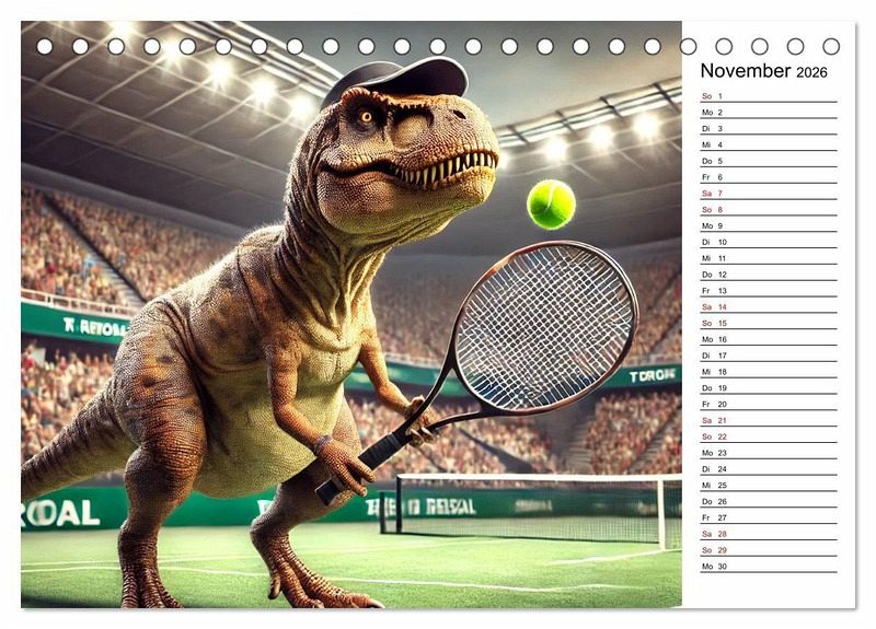 Dieser außergewöhnliche KI generierte Kalender bringt den Spaß auf ein neues Level. Erlebe den legendären T-Rex, wie du ihn noch nie gesehen hast. Beim Fußballspielen, Boxen, Tennis, Snowboarden, Wildwasserrafting und vielen weiteren Sportarten. Mit beeindruckenden, humorvollen Illustrationen begleitet dich dieser sportliche Dino durch das Jahr und sorgt jeden Monat für ein Schmunzeln. Perfekt für Sportfans, Dinoliebhaber und alle, die Spaß an originellen Motiven haben. Ein einzigartiges Geschenk für Groß und Klein.