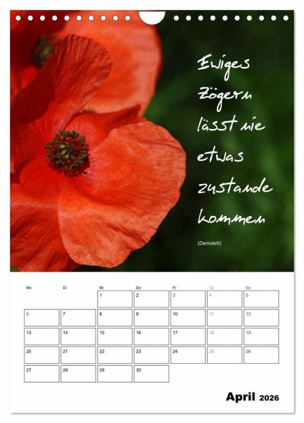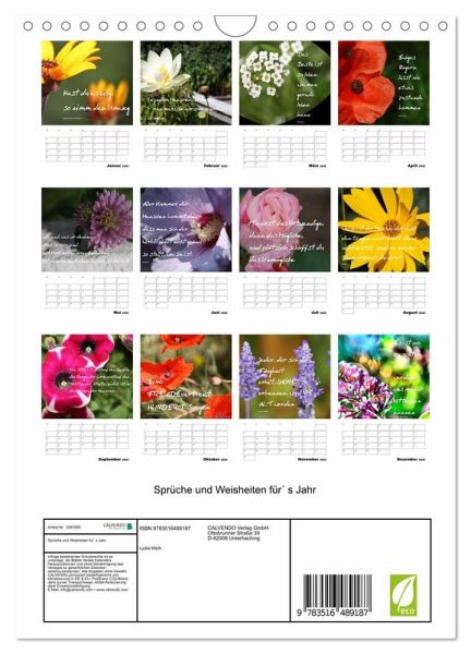 QUALITÄT - Hochwertiger Fotokalender mit 12 wunderschönen Motiven auf lichtbeständigem Bilderdruckpapier, robuste Spiralbindung mit Aufhängebügel.NACHHALTIG - deutliche Abfallreduzierung durch bedarfsgerechte Einzelstückfertigung, umweltfreundliches FSC-zertifiziertes Papier, Produktion in Deutschland, klimabewusste Logistik.PERFEKTES GESCHENK - Kalender für Freunde und Familie, für Kinder und Erwachsene, jung und alt, zu Weihnachten, Geburtstag oder zwischendurch.VIELFALT - Bildkalender in verschiedenen Formaten, z.B. DIN A5, DIN A4, DIN A3 sowie DIN A2. Ob Naturmotiv, Gemälde oder Fotos, ideal für ein persönliches Wohlfühlambiente.Blumen und Sprüche von Autor(in): lydia weih