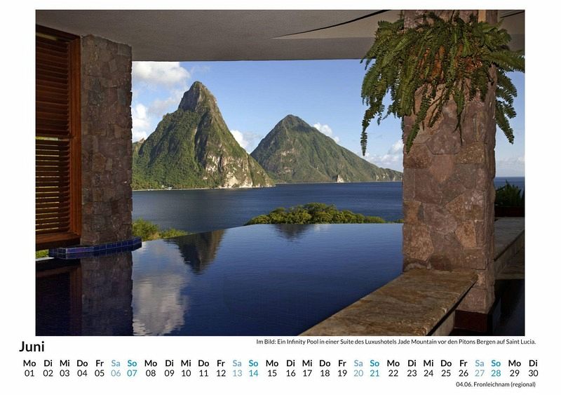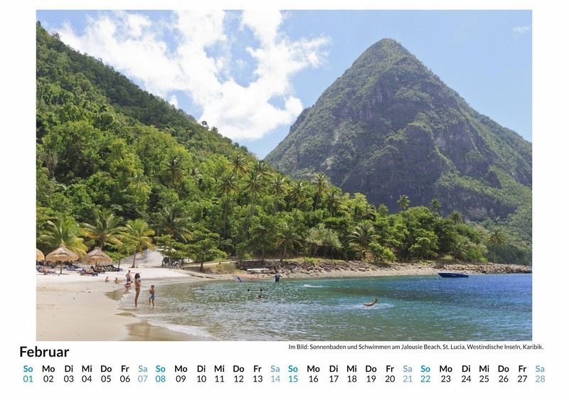 Entdecken Sie die paradiesische Schönheit von St. Lucia jeden Monat aufs Neue! Unser hochwertiger Wandkalender entführt Sie mit 12 atemberaubenden Motiven auf die karibische Trauminsel. Ob die majestätischen Pitons, traumhafte Strände oder üppige Regenwälder - jedes Bild fängt die Magie dieser einzigartigen Insel ein. Gedruckt auf lichtbeständigem, FSC-zertifiziertem Bilderdruckpapier, sorgt der Kalender für brillante Farben und eine nachhaltige Produktion. Hergestellt in Deutschland, vereint er höchste Qualität mit umweltbewusstem Design. Gönnen Sie sich oder Ihren Liebsten ein Stück Karibik für Zuhause - perfekt als Geschenk oder zur eigenen Inspiration! Hochwertig Erleben Sie ein Jahr voller Eleganz mit unserem Premium-Fotokalender. Jedes der 12 Motive ist auf hochwertigem, lichtbeständigem Bilderdruckpapier gedruckt, um die Lebendigkeit jedes Bildes zu bewahren. Die robuste Spiralbindung gewährleistet Langlebigkeit und einfache Handhabung. Nachhaltig Unser Engagement für die Umwelt spiegelt sich in jedem Exemplar wider. Durch die Produktion auf Abruf reduzieren wir signifikant unseren Abfall. Wir verwenden ausschließlich umweltfreundliches, FSC-zertifiziertes Papier. Stolz gefertigt in Deutschland, achten wir bei unserer Logistik auf Klimaschutz, um unseren ökologischen Fußabdruck zu minimieren. Das ideale Geschenk Dieser Kalender ist das perfekte Präsent für jeden Anlass - ob Weihnachten, Geburtstage oder einfach als liebevolle Aufmerksamkeit zwischendurch. Geeignet für Freunde, Familie, Kinder und Erwachsene gleichermaßen, bereichert er jedes Zuhause mit seiner Vielfalt und Schönheit, unabhängig vom Alter der Beschenkten.