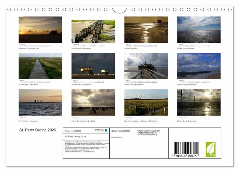 QUALITÄT - Hochwertiger Fotokalender mit 12 wunderschönen Motiven auf lichtbeständigem Bilderdruckpapier, robuste Spiralbindung mit Aufhängebügel.NACHHALTIG - deutliche Abfallreduzierung durch bedarfsgerechte Einzelstückfertigung, umweltfreundliches FSC-zertifiziertes Papier, Produktion in Deutschland, klimabewusste Logistik.PERFEKTES GESCHENK - Kalender für Freunde und Familie, für Kinder und Erwachsene, jung und alt, zu Weihnachten, Geburtstag oder zwischendurch.VIELFALT - Bildkalender in verschiedenen Formaten, z.B. DIN A5, DIN A4, DIN A3 sowie DIN A2. Ob Naturmotiv, Gemälde oder Fotos, ideal für ein persönliches Wohlfühlambiente.an den Traumstränden von St. Peter Ording von Autor(in): Fotine