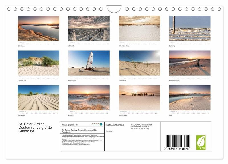 QUALITÄT - Hochwertiger Fotokalender mit 12 wunderschönen Motiven auf lichtbeständigem Bilderdruckpapier, robuste Spiralbindung mit Aufhängebügel.NACHHALTIG - deutliche Abfallreduzierung durch bedarfsgerechte Einzelstückfertigung, umweltfreundliches FSC-zertifiziertes Papier, Produktion in Deutschland, klimabewusste Logistik.PERFEKTES GESCHENK - Kalender für Freunde und Familie, für Kinder und Erwachsene, jung und alt, zu Weihnachten, Geburtstag oder zwischendurch.VIELFALT - Bildkalender in verschiedenen Formaten, z.B. DIN A5, DIN A4, DIN A3 sowie DIN A2. Ob Naturmotiv, Gemälde oder Fotos, ideal für ein persönliches Wohlfühlambiente.St. Peter-Ording, die größte Sandkiste an der Nordsee. von Autor(in): Nordbilder Fotografie aus Leidenschaft