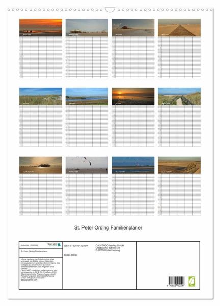 QUALITÄT - Hochwertiger Fotokalender mit 12 wunderschönen Motiven auf lichtbeständigem Bilderdruckpapier, robuste Spiralbindung mit Aufhängebügel.NACHHALTIG - deutliche Abfallreduzierung durch bedarfsgerechte Einzelstückfertigung, umweltfreundliches FSC-zertifiziertes Papier, Produktion in Deutschland, klimabewusste Logistik.PERFEKTES GESCHENK - Kalender für Freunde und Familie, für Kinder und Erwachsene, jung und alt, zu Weihnachten, Geburtstag oder zwischendurch.VIELFALT - Bildkalender in verschiedenen Formaten, z.B. DIN A5, DIN A4, DIN A3 sowie DIN A2. Ob Naturmotiv, Gemälde oder Fotos, ideal für ein persönliches Wohlfühlambiente.12 zauberhafte Fotografien von St. Peter Ording begleiten Sie durchs Jahr. von Autor(in): Andrea Potratz.