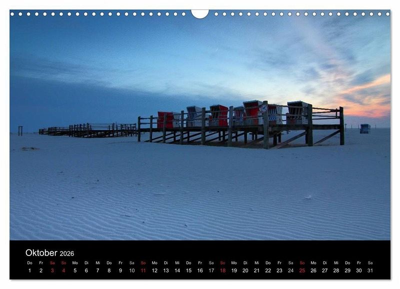 St. Peter-Ording mit seinen typischen Pfahlbauten, den endlos langen Stränden sowie dem Naturpark Wattenmeer erfreut sich großer Beliebtheit bei Urlaubern, Auch der nahe gelegene Leuchtturm von Westerhever zieht Jahr für Jahr viele Menschen an. Die Aufnahmen dieses Kalenders entstanden bei diversen Aufenthalten zu unterschiedlichen Jahreszeiten.