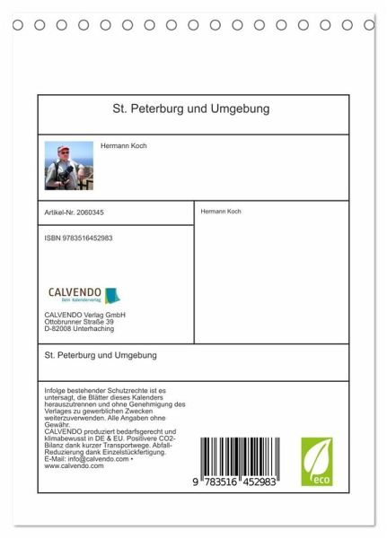 QUALITÄT - Hochwertiger Fotokalender mit 12 wunderschönen Motiven auf lichtbeständigem Bilderdruckpapier, robuste Spiralbindung.NACHHALTIG - deutliche Abfallreduzierung durch bedarfsgerechte Einzelstückfertigung, umweltfreundliches FSC-zertifiziertes Papier, Produktion in Deutschland, klimabewusste Logistik.PERFEKTES GESCHENK - Kalender für Freunde und Familie, für Kinder und Erwachsene, jung und alt, zu Weihnachten, Geburtstag oder zwischendurch.VIELFALT - Bildkalender in verschiedenen Formaten, z.B. DIN A5, DIN A4, DIN A3 sowie DIN A2. Ob Naturmotiv, Gemälde oder Fotos, ideal für ein persönliches Wohlfühlambiente.Erleben Sie St. Petersburg mit allen Schönheiten von Autor(in): Hermann Koch