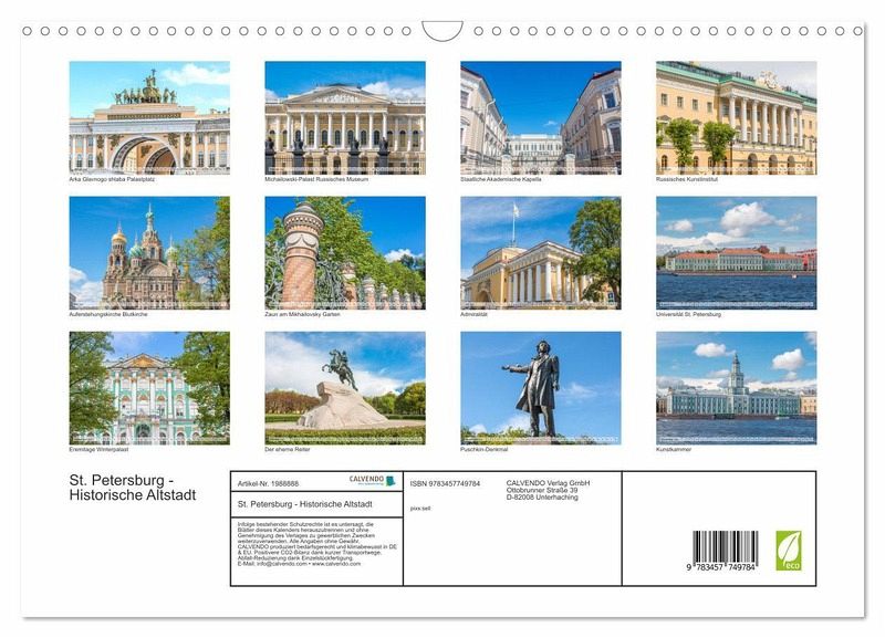 QUALITÄT - Hochwertiger Fotokalender mit 12 wunderschönen Motiven auf lichtbeständigem Bilderdruckpapier, robuste Spiralbindung mit Aufhängebügel.NACHHALTIG - deutliche Abfallreduzierung durch bedarfsgerechte Einzelstückfertigung, umweltfreundliches FSC-zertifiziertes Papier, Produktion in Deutschland, klimabewusste Logistik.PERFEKTES GESCHENK - Kalender für Freunde und Familie, für Kinder und Erwachsene, jung und alt, zu Weihnachten, Geburtstag oder zwischendurch.VIELFALT - Bildkalender in verschiedenen Formaten, z.B. DIN A5, DIN A4, DIN A3 sowie DIN A2. Ob Naturmotiv, Gemälde oder Fotos, ideal für ein persönliches Wohlfühlambiente.Der Kalender gibt Einblicke in die ehemalige Hauptstadt des Zarenreichs, die Ostseemetropole und das kulturelle Zentrum Russlands, St. Petersburg. von Autor(in): Fabian Junge