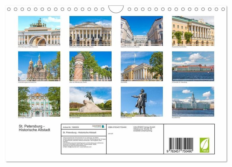 QUALITÄT - Hochwertiger Fotokalender mit 12 wunderschönen Motiven auf lichtbeständigem Bilderdruckpapier, robuste Spiralbindung mit Aufhängebügel.NACHHALTIG - deutliche Abfallreduzierung durch bedarfsgerechte Einzelstückfertigung, umweltfreundliches FSC-zertifiziertes Papier, Produktion in Deutschland, klimabewusste Logistik.PERFEKTES GESCHENK - Kalender für Freunde und Familie, für Kinder und Erwachsene, jung und alt, zu Weihnachten, Geburtstag oder zwischendurch.VIELFALT - Bildkalender in verschiedenen Formaten, z.B. DIN A5, DIN A4, DIN A3 sowie DIN A2. Ob Naturmotiv, Gemälde oder Fotos, ideal für ein persönliches Wohlfühlambiente.Der Kalender gibt Einblicke in die ehemalige Hauptstadt des Zarenreichs, die Ostseemetropole und das kulturelle Zentrum Russlands, St. Petersburg. von Autor(in): Fabian Junge