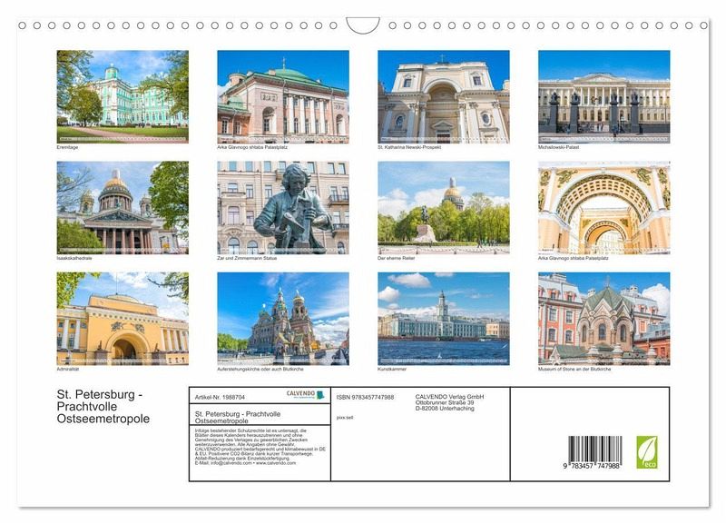 QUALITÄT - Hochwertiger Fotokalender mit 12 wunderschönen Motiven auf lichtbeständigem Bilderdruckpapier, robuste Spiralbindung mit Aufhängebügel.NACHHALTIG - deutliche Abfallreduzierung durch bedarfsgerechte Einzelstückfertigung, umweltfreundliches FSC-zertifiziertes Papier, Produktion in Deutschland, klimabewusste Logistik.PERFEKTES GESCHENK - Kalender für Freunde und Familie, für Kinder und Erwachsene, jung und alt, zu Weihnachten, Geburtstag oder zwischendurch.VIELFALT - Bildkalender in verschiedenen Formaten, z.B. DIN A5, DIN A4, DIN A3 sowie DIN A2. Ob Naturmotiv, Gemälde oder Fotos, ideal für ein persönliches Wohlfühlambiente.Der Kalender gibt Einblicke in die ehemalige Hauptstadt des Zarenreichs, die Ostseemetropole und das kulturelle Zentrum Russlands, St. Petersburg. von Autor(in): Fabian Junge