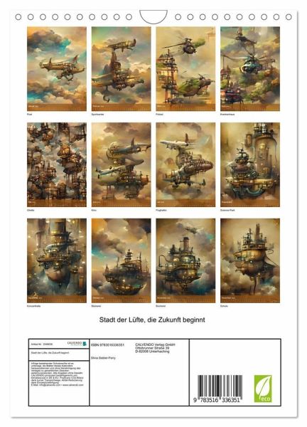 QUALITÄT - Hochwertiger Fotokalender mit 12 wunderschönen Motiven auf lichtbeständigem Bilderdruckpapier, robuste Spiralbindung mit Aufhängebügel.NACHHALTIG - deutliche Abfallreduzierung durch bedarfsgerechte Einzelstückfertigung, umweltfreundliches FSC-zertifiziertes Papier, Produktion in Deutschland, klimabewusste Logistik.PERFEKTES GESCHENK - Kalender für Freunde und Familie, für Kinder und Erwachsene, jung und alt, zu Weihnachten, Geburtstag oder zwischendurch.VIELFALT - Bildkalender in verschiedenen Formaten, z.B. DIN A5, DIN A4, DIN A3 sowie DIN A2. Ob Naturmotiv, Gemälde oder Fotos, ideal für ein persönliches Wohlfühlambiente.Stadt der Lüfte - Die Zukunft beginnt von Autor(in): Silvia Siebler-Ferry