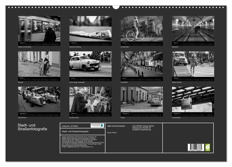 Diese Kalender zeigt das Stadt- und Straßenleben in verschiedenen Städten und Ländern. Die Bilder sind aus dem echten Leben gegriffen. Ein Kalender für alle, denen Landschaften oder Blumen zu langweilig sind.
