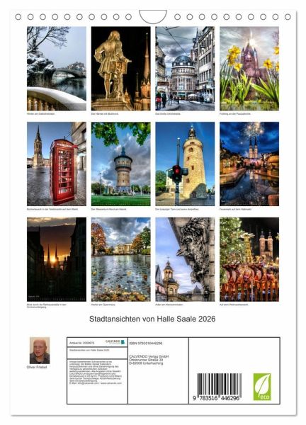 QUALITÄT - Hochwertiger Fotokalender mit 12 wunderschönen Motiven auf lichtbeständigem Bilderdruckpapier, robuste Spiralbindung mit Aufhängebügel.NACHHALTIG - deutliche Abfallreduzierung durch bedarfsgerechte Einzelstückfertigung, umweltfreundliches FSC-zertifiziertes Papier, Produktion in Deutschland, klimabewusste Logistik.PERFEKTES GESCHENK - Kalender für Freunde und Familie, für Kinder und Erwachsene, jung und alt, zu Weihnachten, Geburtstag oder zwischendurch.VIELFALT - Bildkalender in verschiedenen Formaten, z.B. DIN A5, DIN A4, DIN A3 sowie DIN A2. Ob Naturmotiv, Gemälde oder Fotos, ideal für ein persönliches Wohlfühlambiente.Halle an der Saale von seiner schönsten Seite. von Autor(in): Oliver Friebel