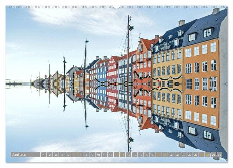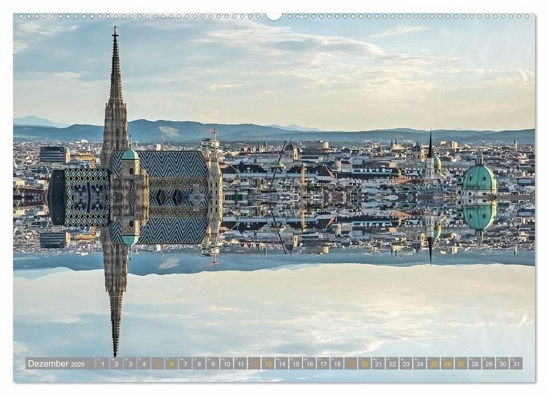 Durch das Hinzufügen eines Spiegelbildes erscheinen europäische Metropolen wie London, Köln, Kopenhagen, Sevilla, Berlin oder Wien in einem völlig neuen Licht. Manche wirken gar, als würden sie mit ihren bedeutenden Sehenswürdigkeiten direkt am Wasser liegen. Langes Ausprobieren hat zu diesen außergewöhnlichen und unrealistischen Stadtansichten geführt.