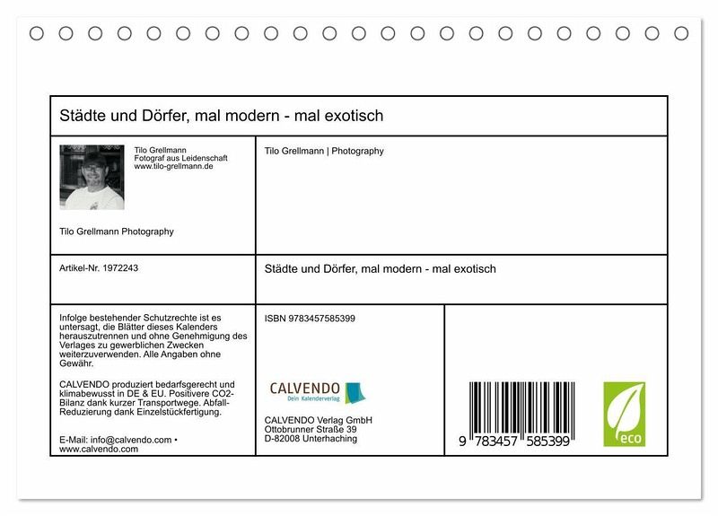 QUALITÄT - Hochwertiger Fotokalender mit 12 wunderschönen Motiven auf lichtbeständigem Bilderdruckpapier, robuste Spiralbindung.NACHHALTIG - deutliche Abfallreduzierung durch bedarfsgerechte Einzelstückfertigung, umweltfreundliches FSC-zertifiziertes Papier, Produktion in Deutschland, klimabewusste Logistik.PERFEKTES GESCHENK - Kalender für Freunde und Familie, für Kinder und Erwachsene, jung und alt, zu Weihnachten, Geburtstag oder zwischendurch.VIELFALT - Bildkalender in verschiedenen Formaten, z.B. DIN A5, DIN A4, DIN A3 sowie DIN A2. Ob Naturmotiv, Gemälde oder Fotos, ideal für ein persönliches Wohlfühlambiente.Moderne Städte und exotische Dörfer in fernen Ländern aus einem anderen Blickwinkel von Autor(in): Tilo Grellmann