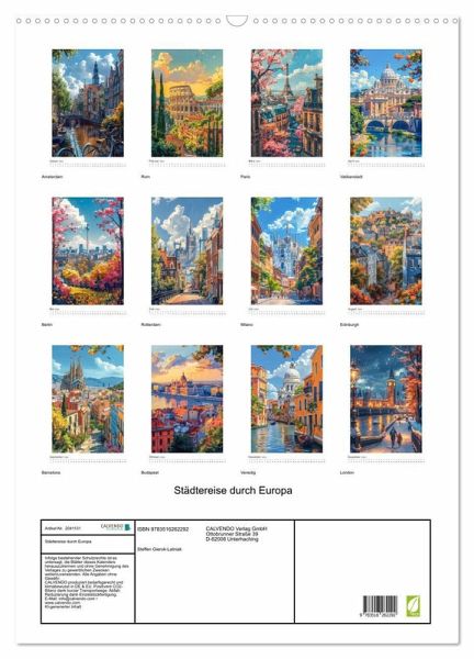 QUALITÄT - Hochwertiger Fotokalender mit 12 wunderschönen Motiven auf lichtbeständigem Bilderdruckpapier, robuste Spiralbindung mit Aufhängebügel.NACHHALTIG - deutliche Abfallreduzierung durch bedarfsgerechte Einzelstückfertigung, umweltfreundliches FSC-zertifiziertes Papier, Produktion in Deutschland, klimabewusste Logistik.PERFEKTES GESCHENK - Kalender für Freunde und Familie, für Kinder und Erwachsene, jung und alt, zu Weihnachten, Geburtstag oder zwischendurch.VIELFALT - Bildkalender in verschiedenen Formaten, z.B. DIN A5, DIN A4, DIN A3 sowie DIN A2. Ob Naturmotiv, Gemälde oder Fotos, ideal für ein persönliches Wohlfühlambiente.Erleben Sie die Vielfalt und den Charme europäischer Metropolen, die auf eine fantsievolle Illustration dargestellt werden.. von Autor(in): Steffen Gierok ; Magik Artist Design